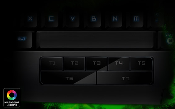 Designed and engineered especially for the MMO gamer, the Razer™ Anansi is the world’s first keyboard that raises your level of gameplay by giving you the power to instantly use up to 7x more commands and abilities over the current ±12 ability keys you now have. Its seven thumb modifier keys located below the space bar allow you to actuate every possible combination of modifier key (shift, ctrl, alt) in total accuracy and comfort using a single key stroke, exponentially expanding the repertoire of spells, abilities and macros you have at your command.