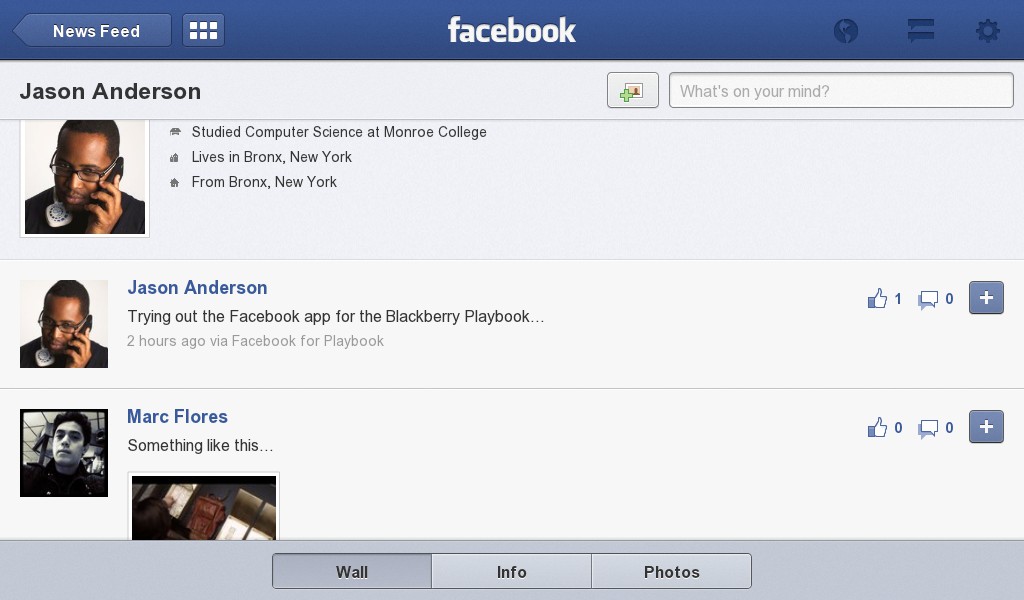 The Facebook app for Playbook looks cool on the surface, but there are a few negatives. So far i noticed that the app doesn’t rotate when turned. Though not major, it means i can’t type in portrait mode.