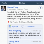 Now, that’s not to say Google+ doesn’t have potential and there are a few features I do like about it. Being able to share only certain things within a given circle is a fantastic idea. Facebook does it to an extent, but Google+ does it better. Although, I can see Facebook maybe stealing the idea and using their groups feature in the same way.