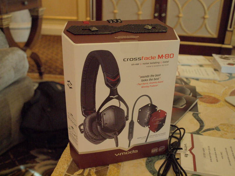 Yesterday I had the pleasure to have some private time with V-MODA in their luxurious suite in the Venetian. They took the time to show me their Crossfade M-80 on-ear noise isolating Metal headphones. Now this isn’t the first time we have reviewed a pair of V-MODA products, they have a couple of articles as their brand both sounds and looks good.