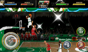 The control scheme is reminiscent of a Sega Genesis controller with the turbo button positioned in a way to press it along with the steal and shoot buttons for shoving and dunking respectively. However, instead of a D-Pad you have a digital analog stick to control your player. As with many action and sports games on phones and tablets, the lack of tactile feedback that comes from a physical button when playing a game means that occasionally you will have to look away from the action and at your fingers to make sure you are pressing the right button, if you’re even pressing one at all. While this can be slightly frustrating in close games where a block or steal misses completely because you couldn’t get your character moving in the right direction, in general it shouldn’t make the game any less fun than how you remember it. Perhaps developers can look into using the vibrate function on mobile devices to provide some type of feedback when buttons are being pressed as possible solution. Additionally, NBA legends like Magic Johnson, Larry Bird, Scottie Pippen and others can be unlocked to make for some awesome combinations with current stars like Kobe Bryant, Paul Pierce, and D. Rose. Long term replay value may wane over time since the game play can become a little repetitive, but breaking the backboard on a friend over WiFi is definitely just as much fun as it was at the arcade. Considering, a similar game could have been released for roughly thirty dollars more on the 3DS or Vita, for $4.99 we have to say that EA’s shot at a mobile port of this classic arcade game is nothing but net.