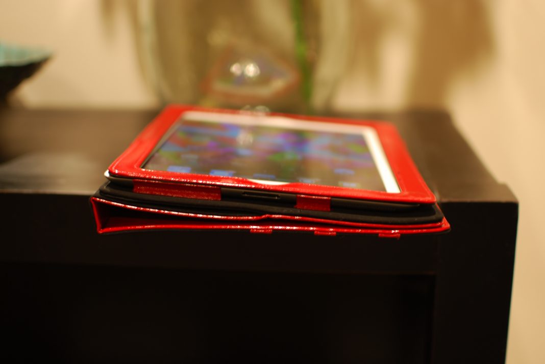 I love the color red. I love a shiny, bright red that screams give me your money, take me home and show me off. So when I saw the Glam iPad case from Cygnett it was love at first sight.The folio style case is a fire engine red with a smooth high gloss finish that’s sure to grab people’s attention. This case makes a statement and is not for the wallflowers among us.