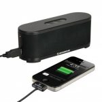 This is the second Scosche Bluetooth speaker that I’m taking a look at now and this one is the full sized BoomSTREAM. It’s very similar to the BoomSTREAM Mini in ease of use and ability to stream audio from your Bluetooth equipped mobile device. That doesn’t mean it’s just a larger version of the BoomSTEAM Mini however as it does have couple unique tricks up its sleeve that the mini version lacks. Not only is the BoomSTREAM a Bluetooth speaker and a speakerphone, but it’s also a portable battery charger.