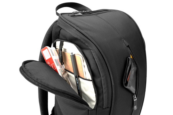 Not only does the Booq Boa Squeeze Graphite have a slim, lightweight design with a striking curve but it’s packed with more pockets than the average organizer. The Booq Boa Squeeze Graphite is made from 1680 denier ballistic nylon exterior with water repellant coating. The inside is lined with water-repellant ripstop polyester. Since the exterior is completely black the lining is a great contrast in cream. That back padding is made of Airmesh padding which allows heat to escape and with the ergonomic shoulder straps maximizes comfort and conforms to almost any body type. All backpacks come tagged with a Terralinq serial number. Once registered the Booq Terralinq service may help reunite you with your lost & found bag.