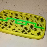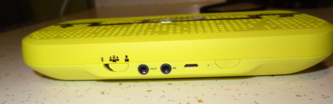 I know the bright Yellow may not be your thing, even though I like it but the DECK does come in three additional colors which is Blue, Red, and Black. Rather than the circular or boxy wireless speakers you are used to seeing the DECK comes as a slightly thick slab. The way it’s designed you’re supposed to get 360 degrees of sound no matter where you stand. Splattered across the top is the SOL insignia which lights up in different colors whether your turning it on, pairing it, or doing its Heist Mode(more on that later). Around those is the volume buttons and multi-function button that blends in so well you may not notice it. It feels like a well put together device and I like the design change. Makes it easy to slide in and out our bag based on its flat shape.