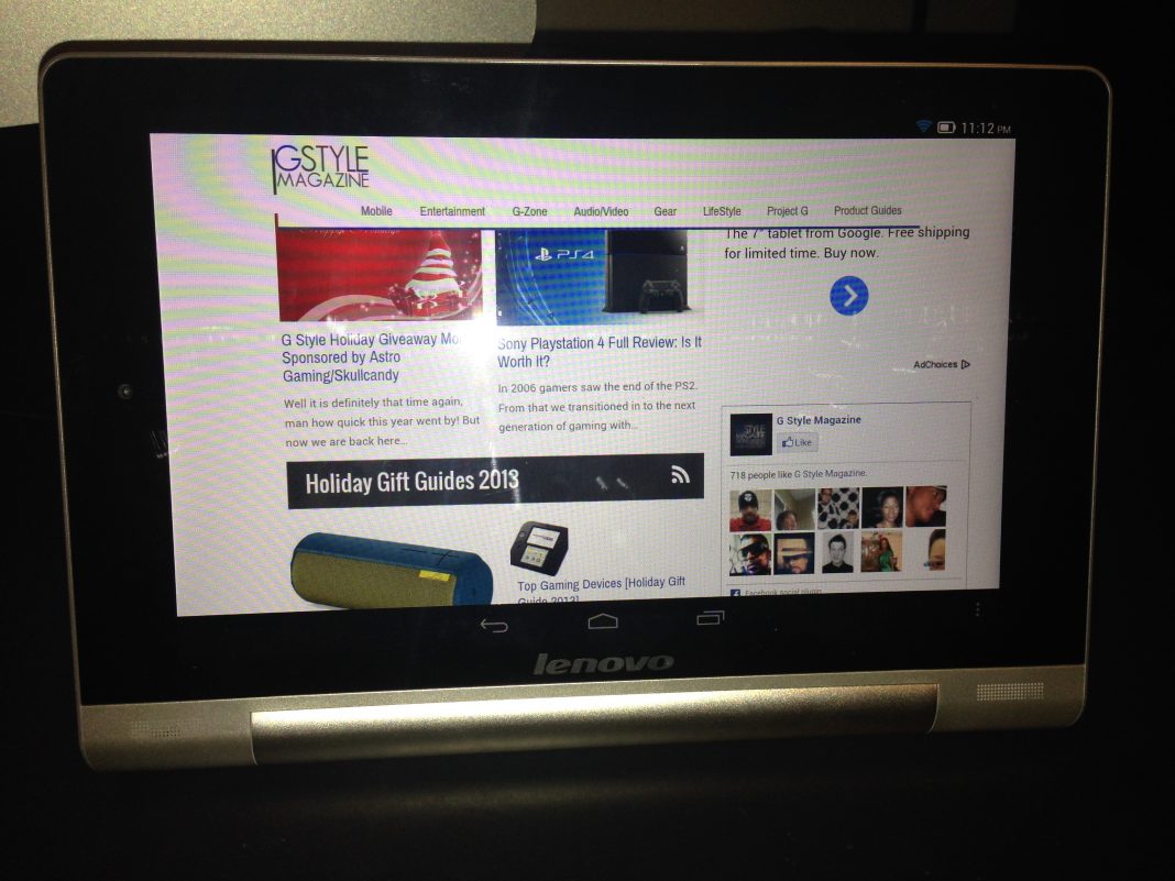 The screen the Yoga 8 has isn’t the brightest and isn’t the sharpest. The Yoga 8’s LCD display has a resolution of 1280 x 800 which gives it good resolution but it could’ve been a bit sharper considering the Nexus 7 has a resolution of 1920 x 1200. Sometimes the screen looked a little washed out and the colors looked flat at times. Watching video wasn’t too bad of an experience but not great. In other tablets I’ve seen much sharper and crisper playback. The audio wasn’t too bad either, the Yoga 8 has two front facing speakers that are loud do give you some quality and I didn’t have much complaint. However, to me audio on most tablets kind of suck anyway and I typically use headphones so I may be a poor judge here. As an e-book reader it’s just fine. The screen is bright enough to be able to read without any real strain on the eyes. I did notice a slight bleed near the bezel but nothing too concerning. It’s not the best screen in terms of clarity and color palette but overall it’s still a good-looking screen and I don’t think that anyone would be overly disappointed.