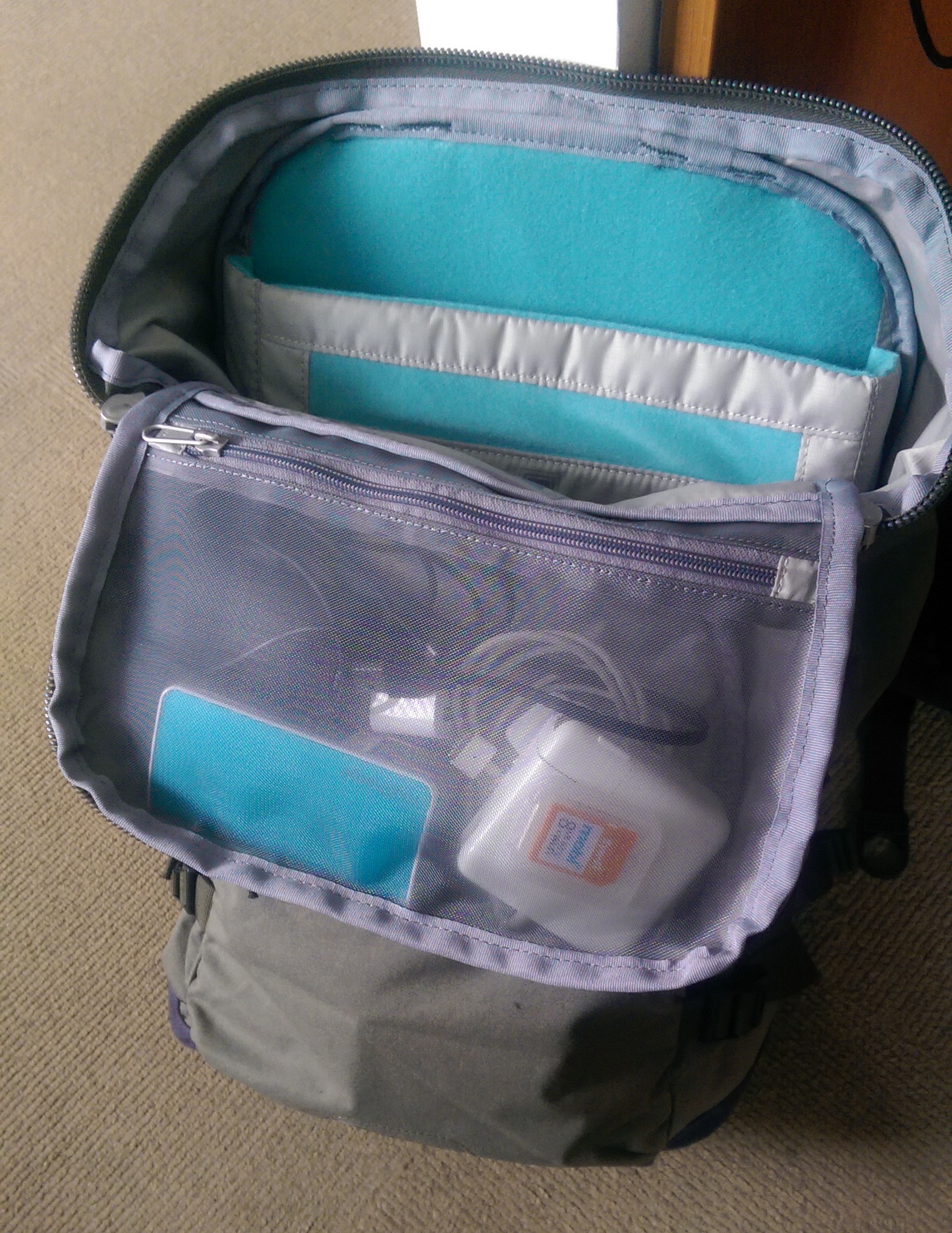 Now I’ve been using this backpack for just about 3 weeks now and I love this thing. I wear it everyday. I can fit all of my gadgets, and I mean laptop, tablet, external charges, cables, PS Vita, phones, and other non tech items in this all in separate little pockets. And when it comes time for gym day I can easily fit in my shirt, pants, and some sneakers if I wanted to in the main compartment. Plus it getting warm on some days now, and I have found that I needed to pack away my leather jacket when it was too warm. I have some much space in the main compartment, backing it away there is easy and adds no extra bulk to the bag.