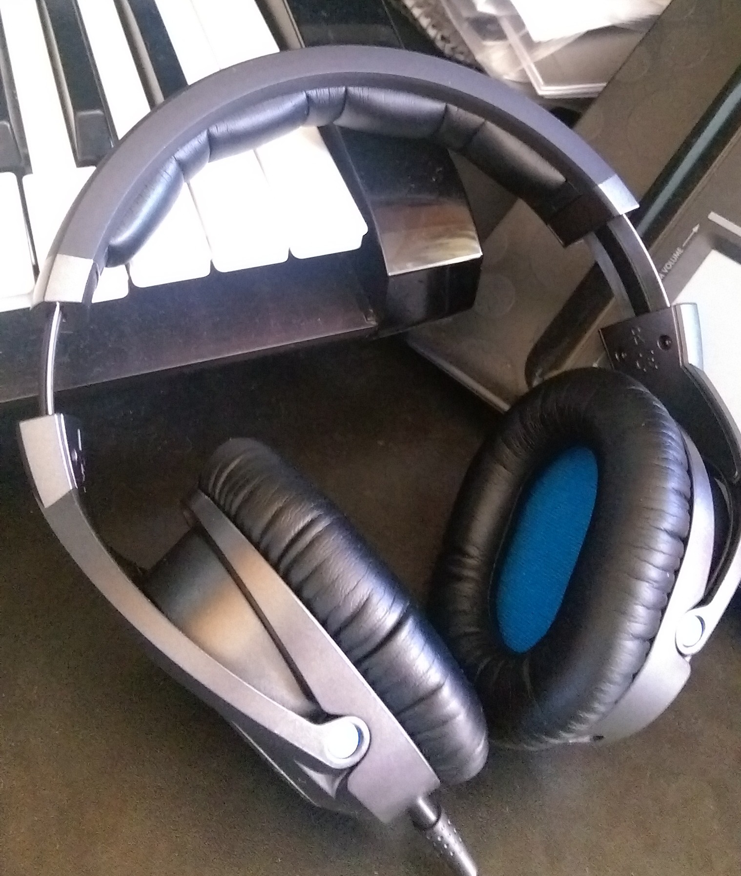 To be straight forward, these are some good looking cans and they come in a real nice, hard shell carrying case that is ideal for travel and keeping them safe. A very nice combination of gun-metal grey, black, and royal blue accents create a very stylish appearance that fit both indoor and outdoor usage. The headband is a matte black color with the word Sennheiser inscribed on the top. Underneath, the headband is lined with an extremely soft leather padding for comfort. It looks good and allowed me to keep the headphones on very comfortably, even while wearing a hat. The metal ear adjustments are easy enough to use without feeling cheap.