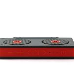 The Jam Rewind isn’t all grey and black as there is a splash of color on the sides. In my case, there is a red silicon border that wraps all the way around the sides. I”m guessing this is for some shock protection a well as grip. On the top, there are soft buttons built in that let you control playback, volume, and power. It also has indicator LED’s to let you know when it is on and paired.