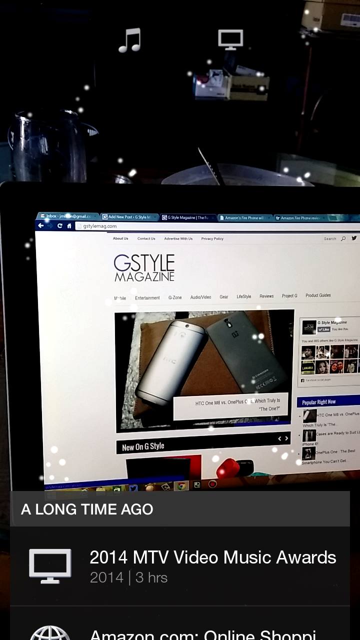 The two main features of the Fire Phone they been pushing is Firefly and Dynamic Perspective. Firefly has you fire up the app and while it looks like a camera when you point it at things such as your TV, or there is music playing it will recognize it and either give you info or links to buy it. For instance I was watching the MTV VMAs last month and when I used it, it brought up IMDB and gave me info about the “cast” associated and details of the show. Dynamic Perspective is a lazy way of not using your hands. Instead of swiping you tilt the phone and even at times can be nauseating. At times it’s not even accurate even.