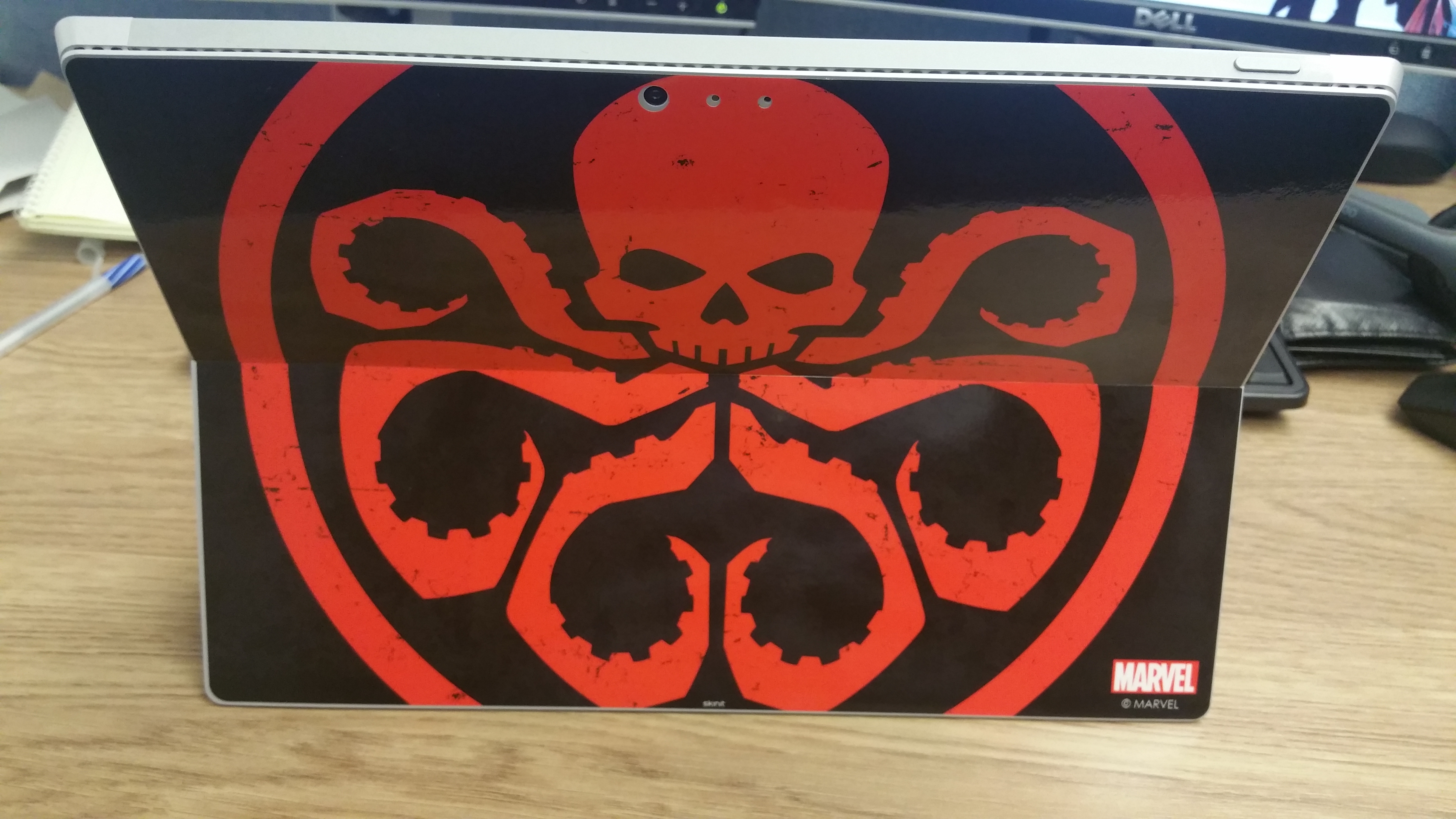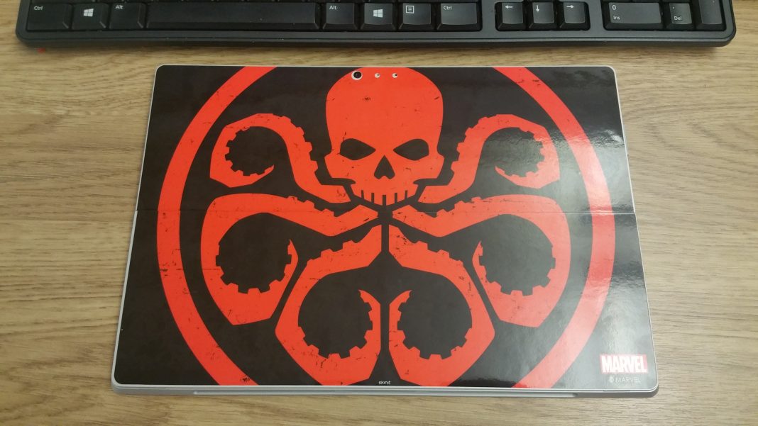 Ever look at your laptop, tablet or mobile device and get tired of its overall appearance? I get like that at times and am always looking for a chance to give my gadgets a new light. I never used a skin before for a device but I had seen a colleague with a similar skin on a Surface Pro 3 a few months back and was intrigued by the idea. Checking out Skinit website they have tons of skins ranging from covering your mobile devices to even covering larger devices such as your video game consoles down to your audio devices. After spending what felt like hours on the site, I decided on Hydra emblem which is a villainous organization from Marvel Comics.