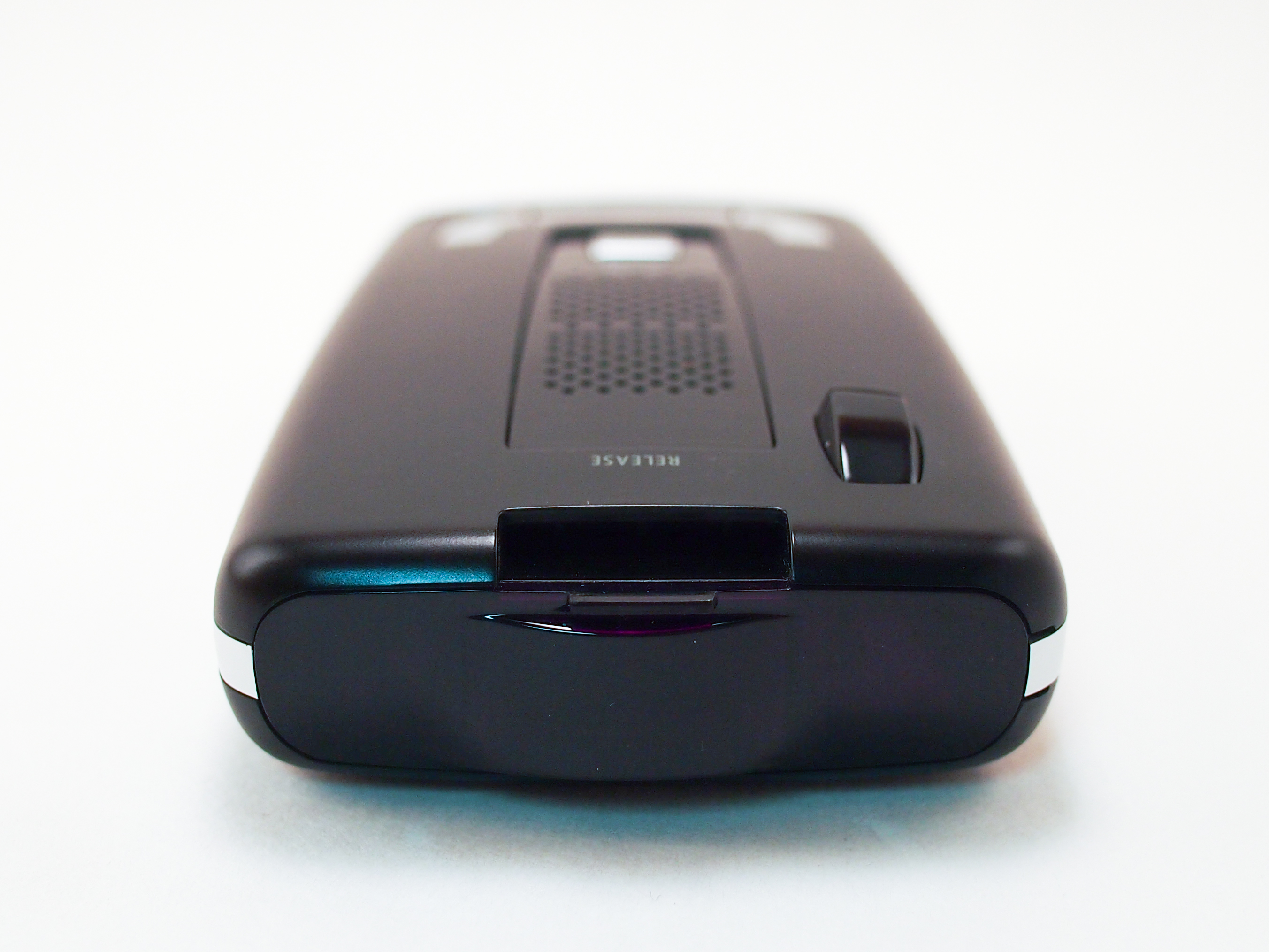 On the rear of the unit, there appears to be a huge sensor, which is what you want with a radar detector. It has to be able to pick up signals from more than a mile away in order to give you enough time to react to whatever possible police threat might be up ahead. I use the word “threat” because that’s what people in the industry call it. Anyways, back to the sensors, on the top of the unit there is also another sensor. This one faces you and I believe it is to detect threats that are to the side of you and behind you.