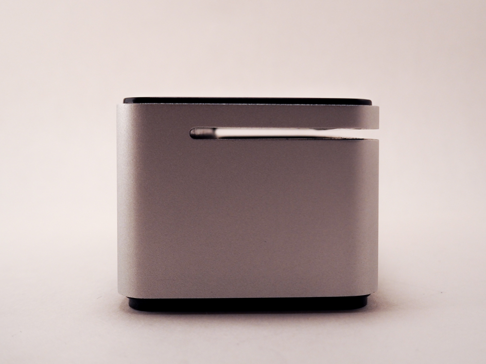 Here’s where the SoundBox 10 really excels. For a little speaker, this thing really packs a punch. This is thanks to the two neodymium drivers nestled up front behind the speaker grill and the passive radiator hidden out back for deep bass. That’s what the that slit is under the touch panel that is carved into the block of aluminum. Again, a very nice design that keeps things tidy and clean.