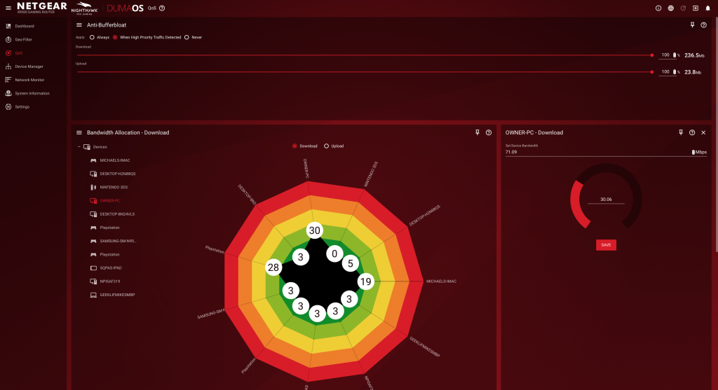 I’ve never actually used DumaOS prior to getting the XR500 but in just a few minutes of using it I felt like I was using the best router interface ever. Although, there was a bit of a learning curve and I haven’t learned it all, it wasn’t a steep curve. Functions are laid out in detail on the left. It’s got that nice red and black background and everything you need to properly setup your network is there. Once you get into setting up a particular function is when you see what DumaOS is really about. While I didn’t get to play with every function, I did mess around with the functions that would make my home network and gaming experience much easier to deal with.