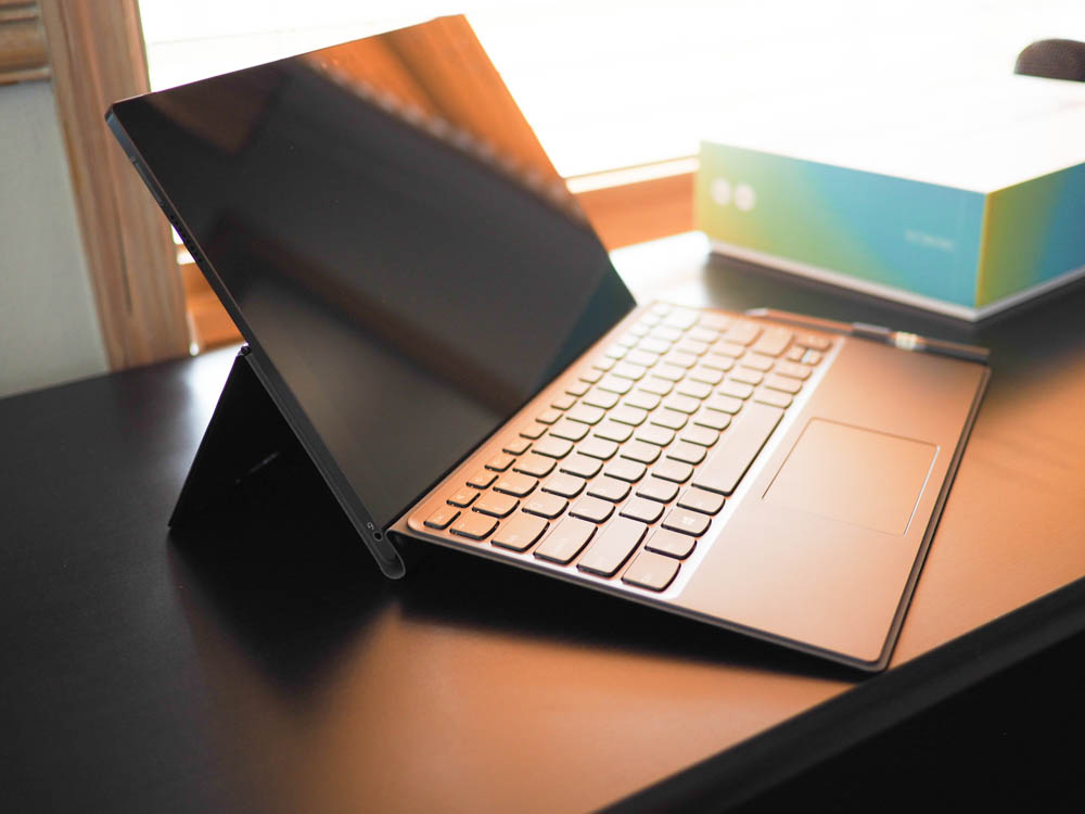 The Lenovo Miix 630 is really a Windows tablet, not unlike Microsoft’s Surface. It’s actually much thinner than a Surface, has a 12.3? FHD+ (1920 x 1280) display with some rather large bezels. I honestly don’t mind the bezels because it just makes the unit that much easier to hold when in tablet mode, making accidental taps on the screen almost non-existent.