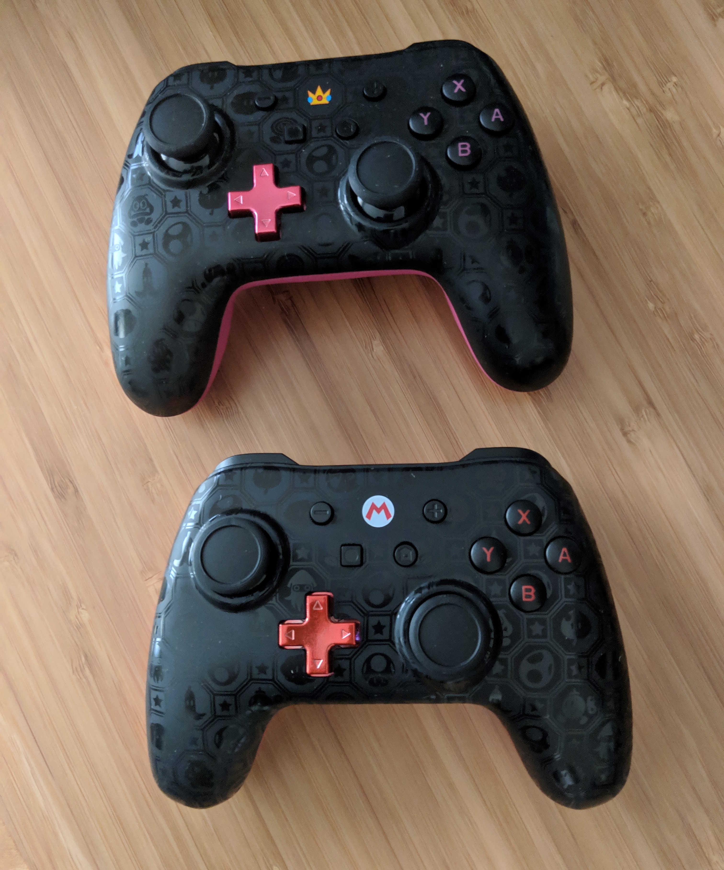 PowerA has catered to the Nintendo fan making their wired controllers in a plethora of designs. For this review PowerA was nice enough to provide me with a few of their controllers in the Shadow design. Depending on the character for instance such as Peach, we have pink on the back while the front features a metallic hot pink D-Pad and pink lettering on the buttons.