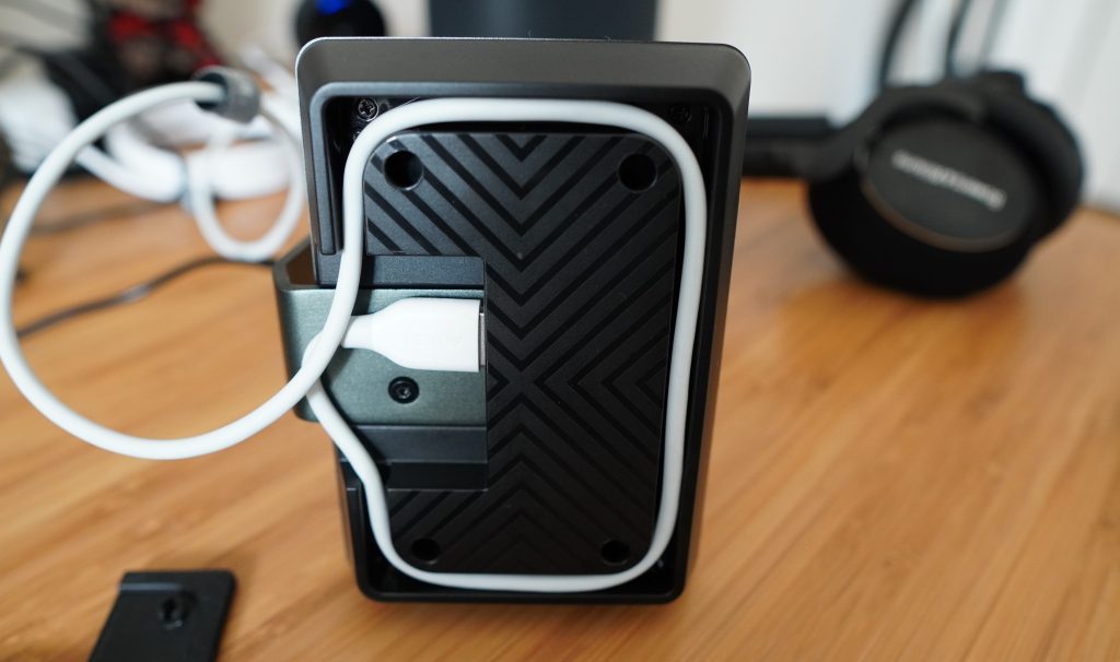 But once this is done you will see how sturdy and solid this device is. It is powered via the included USB-C cable to power brick. There is also a USB-A port on the back to charge up your headphones. Smart move by Raptic is that rubber base pulls off and allows for cable management for your USB-A cable.