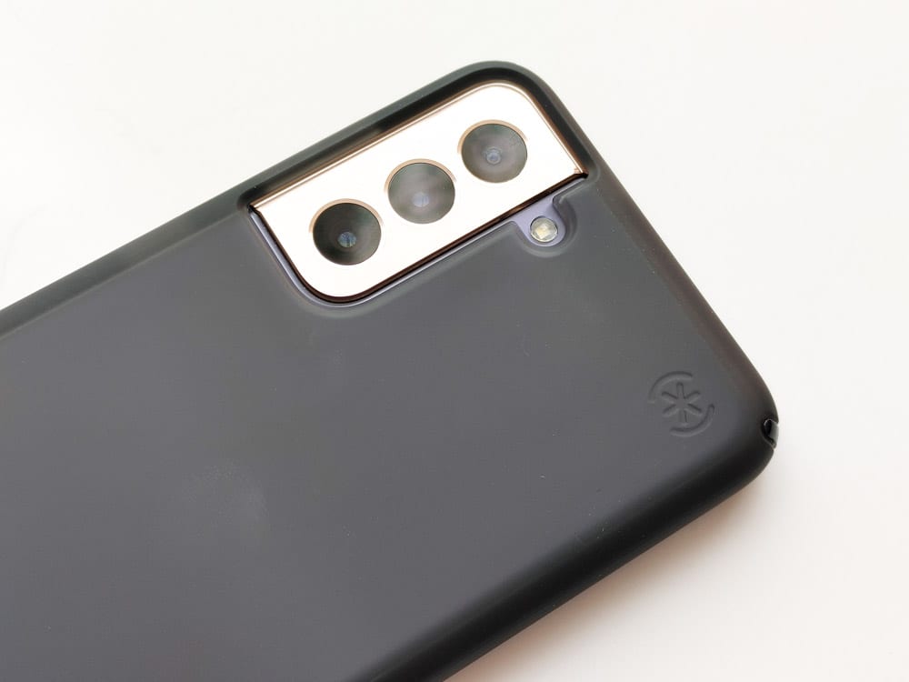 The Speck Presidio2 Grip case is one of Speck’s most iconic cases. Its main claim to fame is the no-slip grips built into the backside of the case along with the Presidio2 Armor Cloud technology. For the Galaxy S21 series though, it seems that Speck has made a change to the case for overall comfort and feel. It now features a new, unique soft-touch finish that makes the case smoother and softer to the touch. It doesn’t feel as plastic as in previous cases and does provide a bit more grip overall. Not only that, the soft-touch finish covers the entire rear now, including the no-slip grips for a more uniform look.