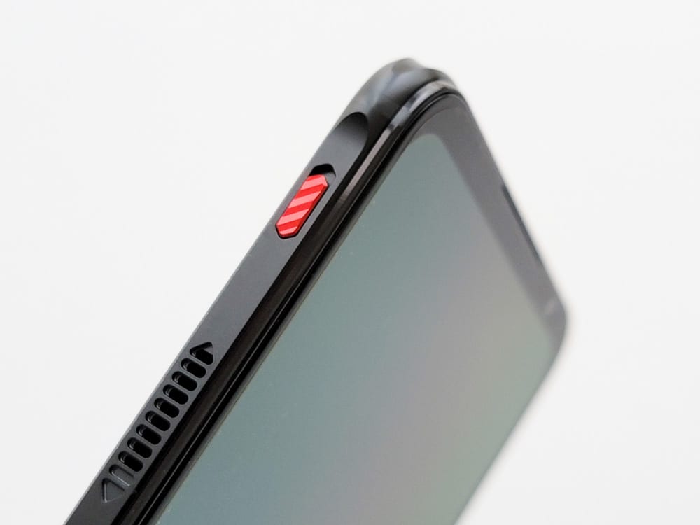 On the right side of the phone, you’ll find the power button, another mic, two shoulder trigger buttons, and the exhaust port for the cooling system. On the left side, you’ll find the volume buttons, the intake port for the cooling system, and a little red switch that enables the RedMagic GameSpace. Basically it’s for serious gaming mode.