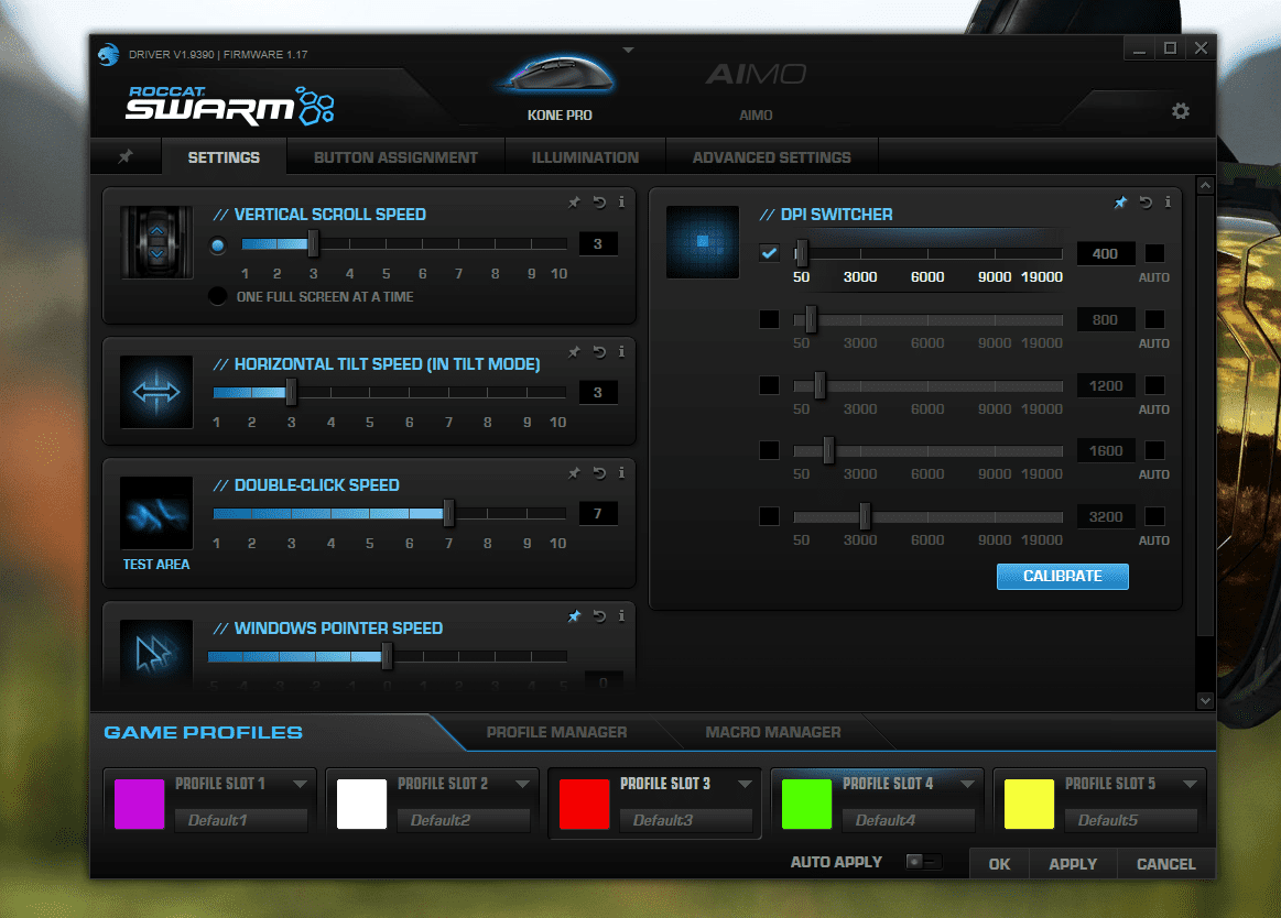 Embedded to KONE Pro is Roccat’s AIMO Intelligent Lighting for that beautiful hexagonal RGB lighting – if you need exact colors, don’t worry there’s 16.8 million to choose from. Roccat’s SWARM software is also available for you to fine tune your mouse and it’s as robust as you’d expect; adjust your DPI to better suit your precision, change your RPG and even the key mapping of the mouse itself. It’s very intuitive and I am happy Roccat updates regularly.