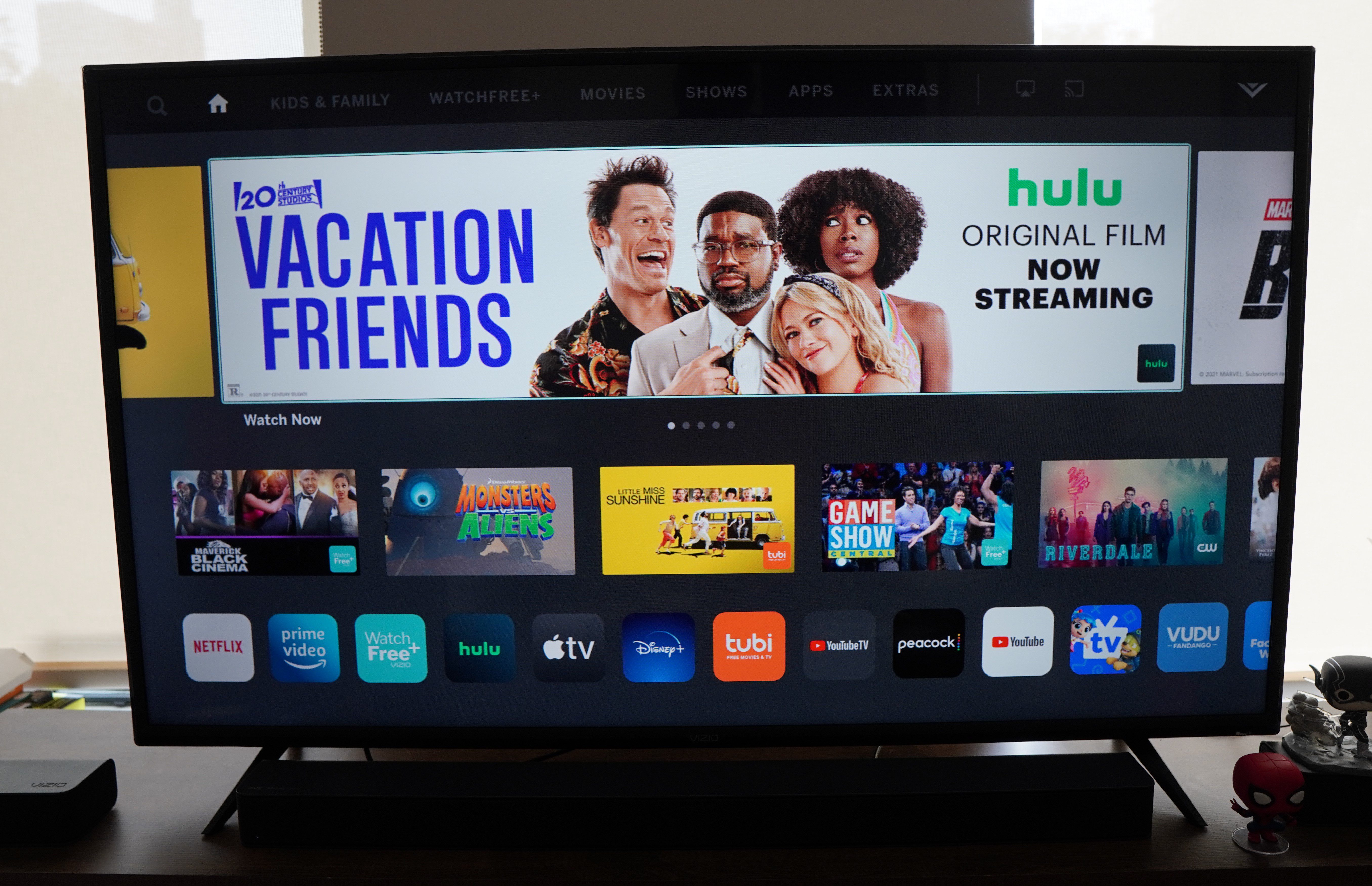 I spent the last few weeks watching everything under the sun on the V555-JO1. I binged a whole season of “Black Summer” on Netflix and seen “The Suicide Squad” on HBOMax which both supported Dolby Vision as well as Dolby Atmos (w/ the accompanying Vizio soundbar). Picture detail was on point but felt like it could of did in some of the darker scenes but that’s in part to no local dimming option. Watching action scenes such as Bane vs Batman in “The Dark Knight Rises” or Cap vs Winter Soldier in “The Winter Solider” looked great with no motion blurring or pixelating. These flicks which I checked out via Disney+ and Apple TV+. This TV does support a bit everything ranging from 4K Ultra HD, Dolby Vision, HDR10, HLG, and HDR+. I did find in its Vivid or Bright setting colors can be a bit too saturated and prefer to go to the Calibrated or Calibrated Dark look. Only thing with this as mentioned you must go in the settings compared to it being on the prior year’s remote. I would get my regular TV programming on YouTube TV whether it was wrestling, the news, or baseball(as seen above).