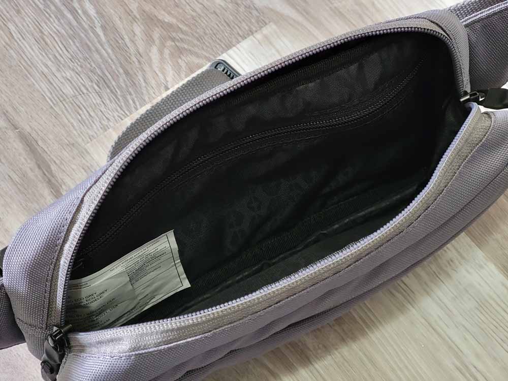 Other notable features are the compression straps on the sides, which is something you normally don’t see in these types of bags. It’s a very nice addition and helps keep the Evolve Sling more compressed against your body when in use. There are also special zipper pulls with what look like vegan leather ends, genuine YKK zippers, and an adjustable strap with buckle.