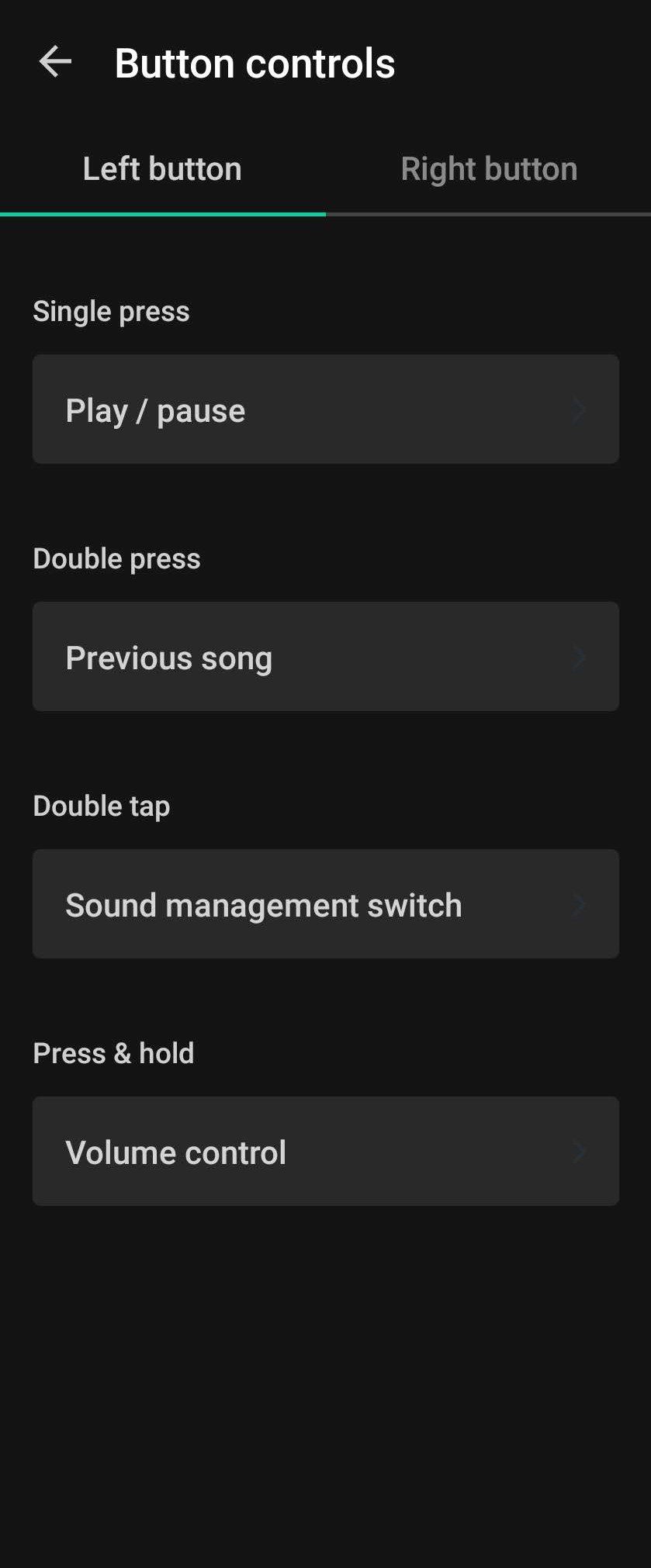 Buttons are programmable via the app and can be customized ranging from Single Press, Double Press, Double Tap, or Holding. But realistically there is only four presets so you will most likely set them up the same on each side.